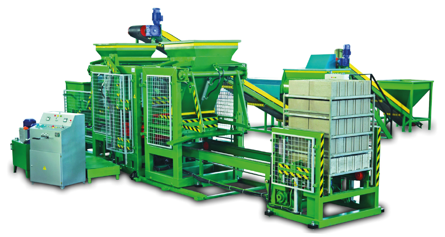 They are machines with hydraulic system operating in the pressure range of 120-140 bar. It can produce 42 locked cobblestones in one printing. It needs printing pallets for production. The concrete compressed into the molds is pressed on the press pallets.